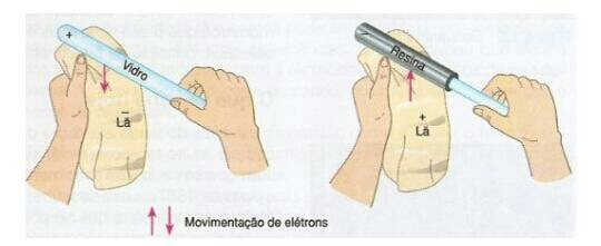 Eletrização. Ocorre quando atritamos dois corpos de substâncias diferente (ou não), inicialmente neutros, e haverá transferência de eletros de um corpo para o outro, de tal forma que um corpo fique eletrizado positivamente (cedeu elétrons), e outro corpo fique eletrizada negativamente ganhou elétrons.