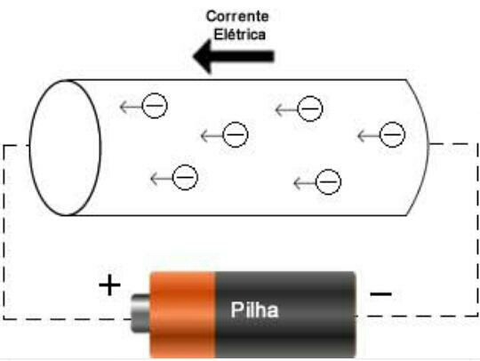 Corrente elétrica. É o fluxo ordenado de partículas portadora de cargas elétricas ou deslocamento de cargas dentro de condutor, quando existe uma diferença de potêncial elétrico entre as extremidades